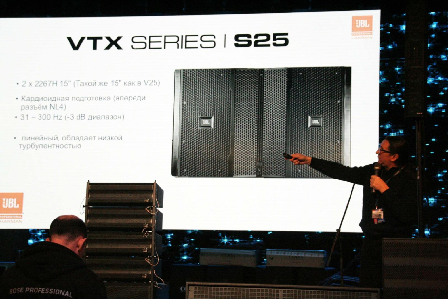 Since not all very important sound engineers were able to speak at this demonstration, we were able to agree with the organizers of the conference and hold an unscheduled additional demonstration of the VTX V20 to a group of sound engineers led by Mr. Astafyev. (sound engineer Grigory Leps).