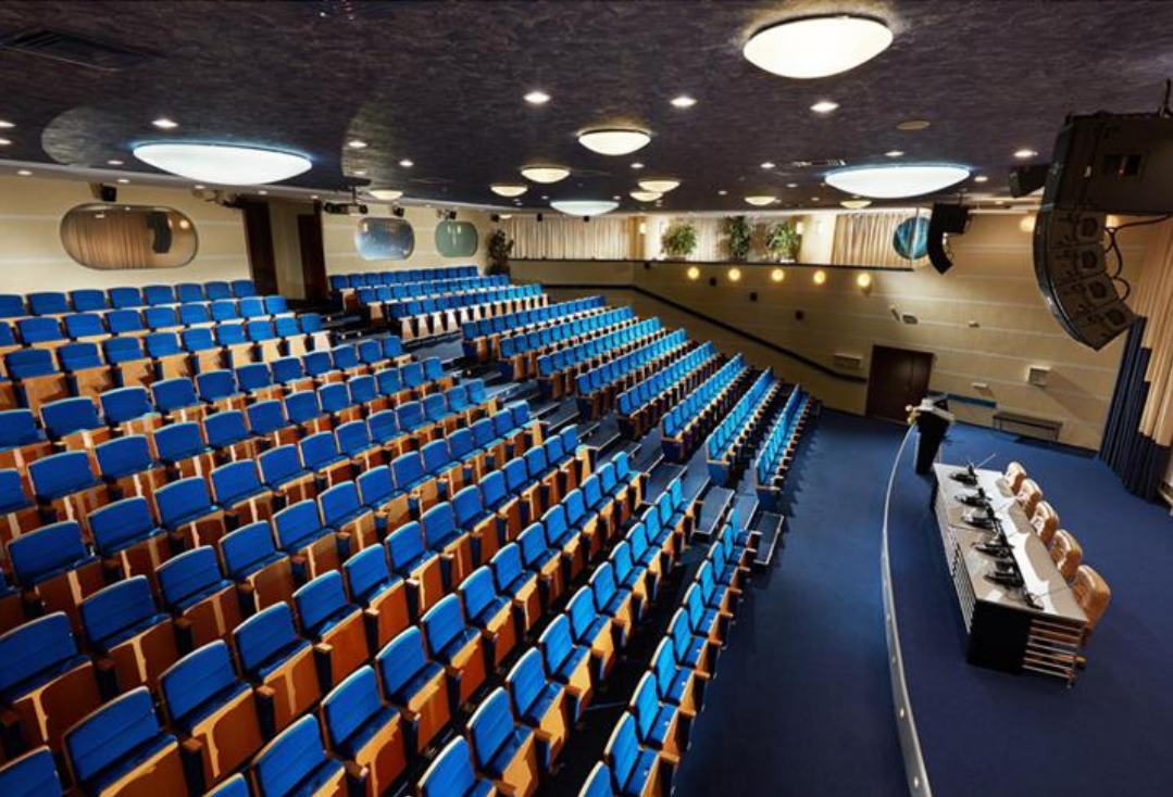 In the congress hall, thanks to modern high-class equipment, it is possible to hold special events, nominations, concerts. Video information is broadcast on a projection widescreen screen with audio accompaniment in Dolby Digital EX (7.1) format.