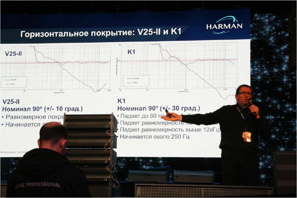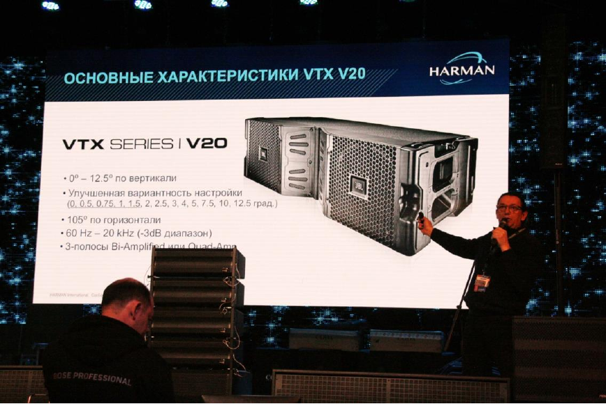 Since not all very important sound engineers were able to speak at this demonstration, we were able to agree with the organizers of the conference and hold an unscheduled additional demonstration of the VTX V20 to a group of sound engineers led by Mr. Astafyev. (sound engineer Grigory Leps).